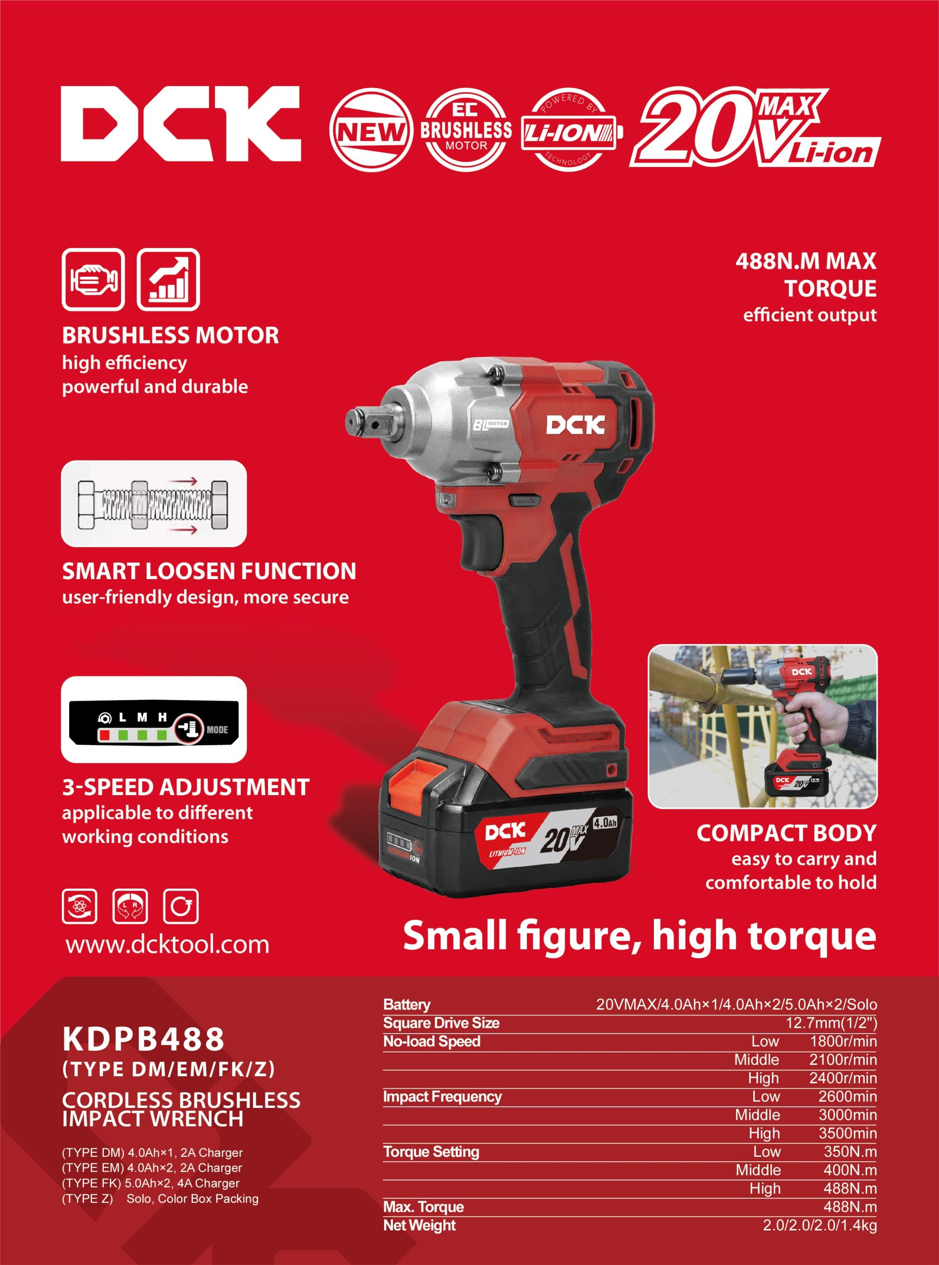 LLAVE DE IMPACTO 20V 1/2″ BRUSHLESS 488NM KDPB488 (EM 4Ahx2) DCK