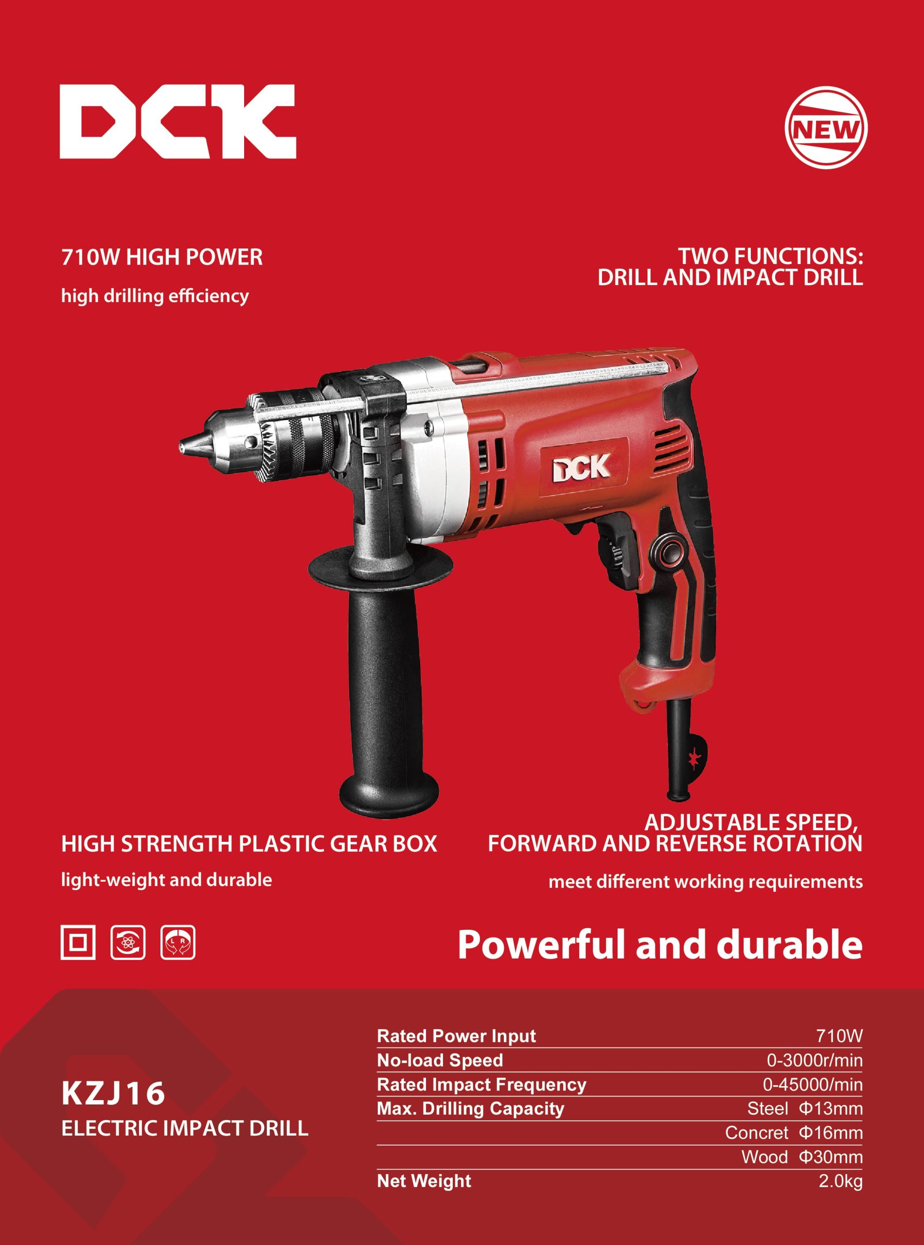 TALADRO CON PERCUTOR 16MM 2 MODOS 710W KZJ16 DCK