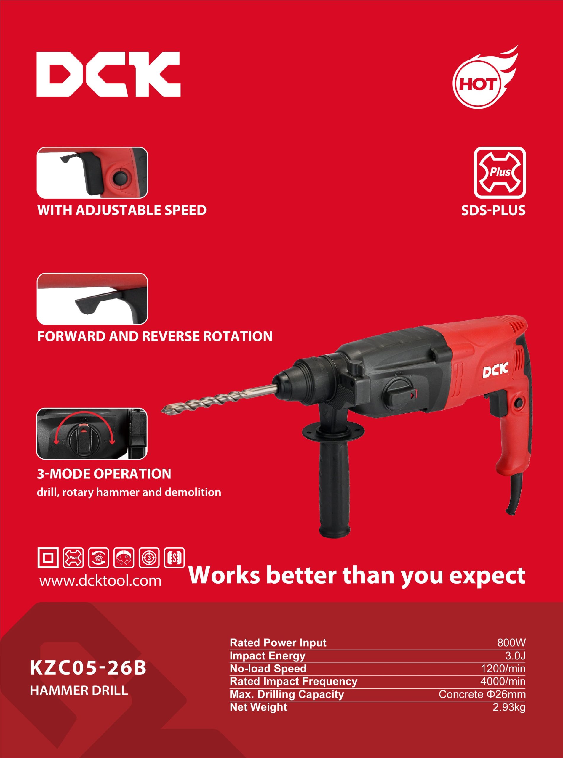 ROTOMARTILLO SDS PLUS 26MM 800W 3 MODOS KZC05-26B DCK