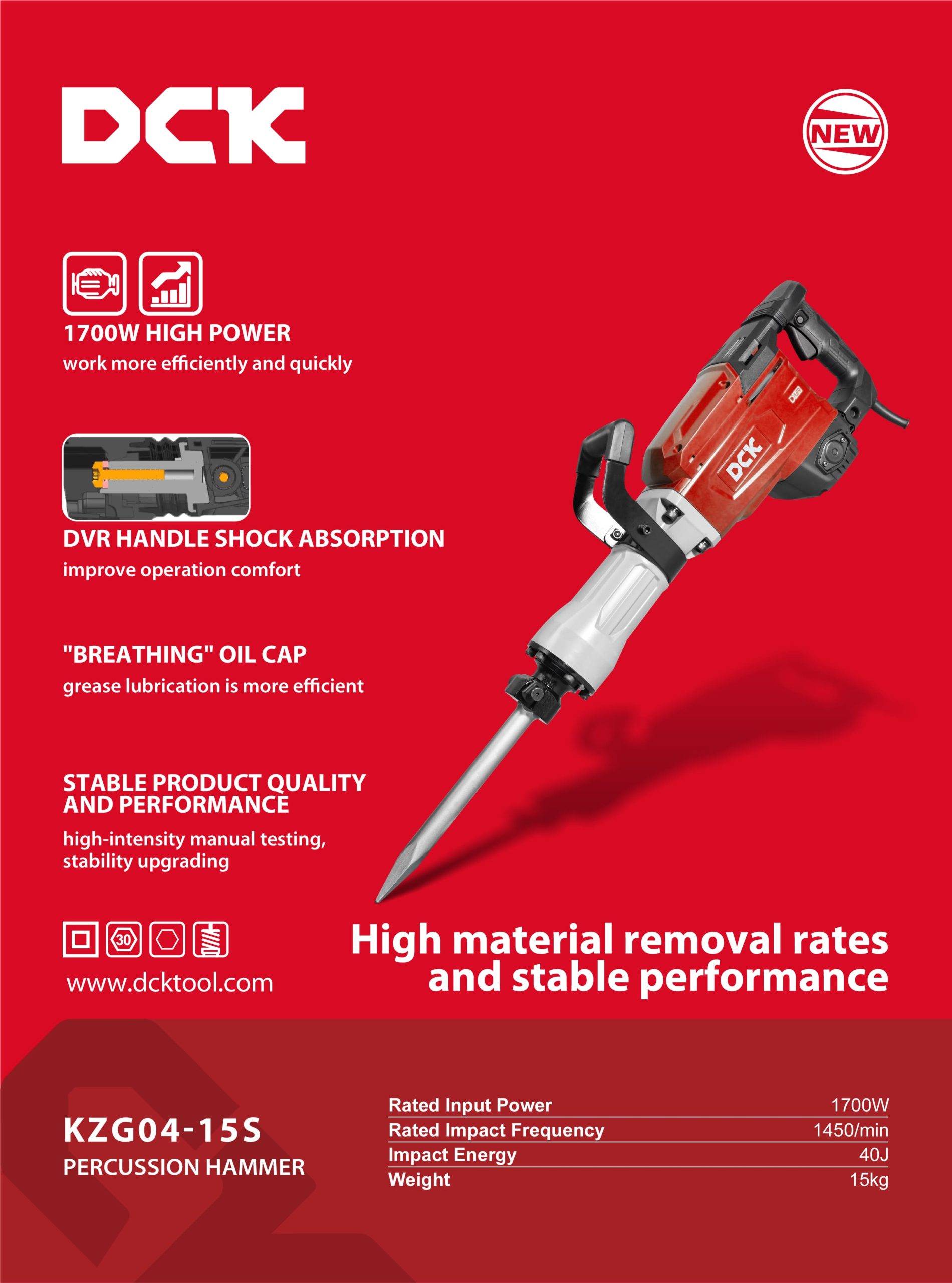 MARTILLO DEMOLEDOR 15KG HEXAGONAL 30MM 40J 1700W KZG04-15S DCK