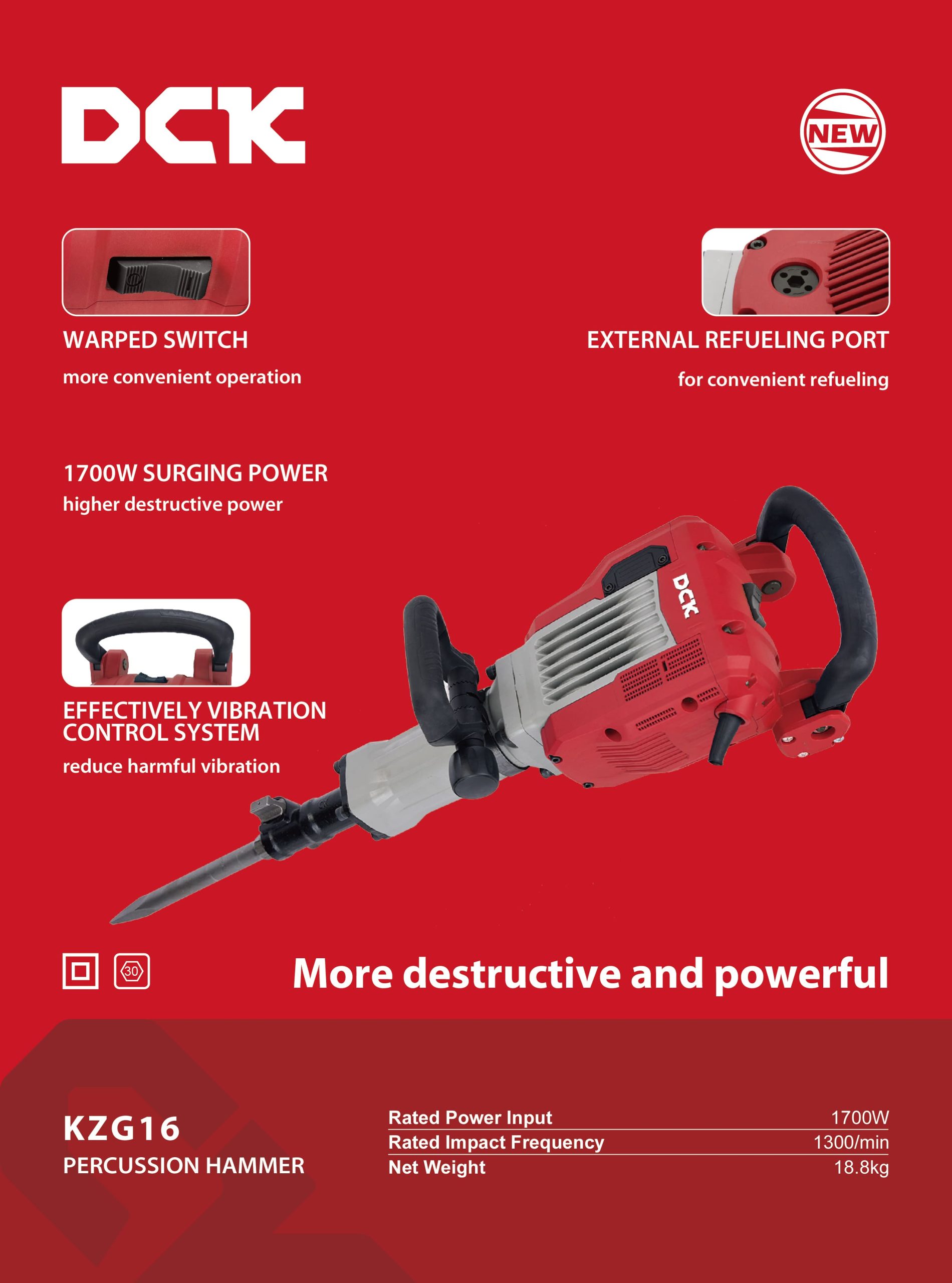 MARTILLO DEMOLEDOR 19KG HEXAGONAL 30MM 44,5J 1700W KZG16 DCK